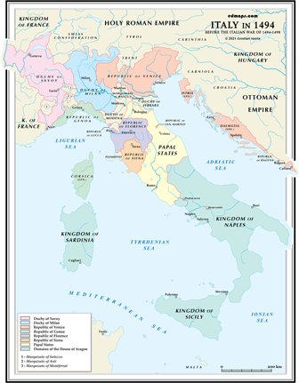 - Italy, c. 1490 (Cambridge Modern History Atlas, 1912)